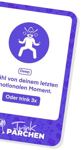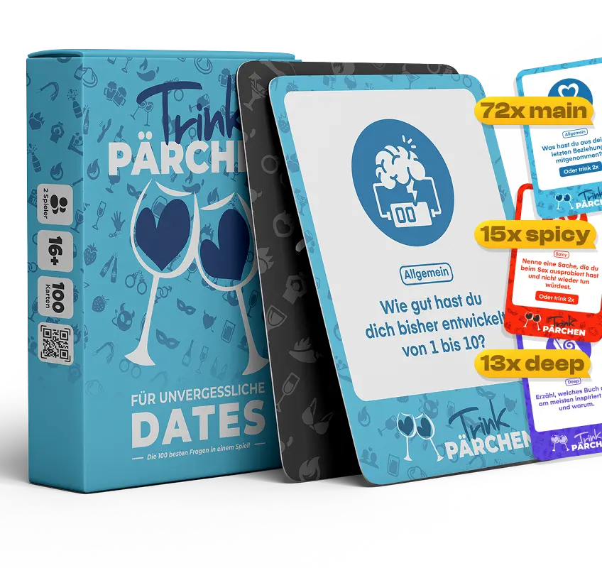 Sind die Fragen zu intim, wenn man sich noch nicht lange kennt? Perfekt durchdacht! Das Hauptspiel startet locker und harmlos. Ihr entscheidet selbst, ob und wann ihr zu Spicy oder Deep wechselt. Niemand muss sich unwohl fühlen – garantiert!